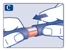 • Nehmen Sie eine neue Einwegnadel und ziehen Sie das Schutzsiegel ab.