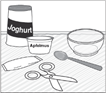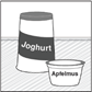 Schritt 3: Legen Sie alles Benötigte auf einer sauberen Oberfläche bereit. ·Die Anzahl Beutel gemäss der Angabe Ihres Arztes resp. Ihrer Ärztin ·Schere ·Kleines Gefäss ·Teelöffel (kleiner Löffel) Schritt 4: Nehmen Sie eine weiche Nahrung, die Ihnen schmeckt, beispielsweise Apfelmus oder Joghurt. ·Verwenden Sie keine heisse Nahrung.