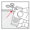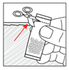 Schritt 7: Schneiden Sie den/die Beutel mit der Schere an der gepunkteten Linie auf.