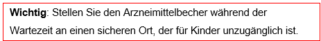 Schritt 11: Verwenden Sie eine Uhr oder einen Wecker und warten Sie 10 Minuten. ·Den Arzneimittelbecher nicht schütteln oder schwenken.