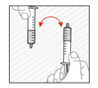 Schritt 17: Rühren Sie das Gemisch vorsichtig mit der Spritzenspitze um. ·Den Arzneimittelbecher nicht schütteln oder schwenken.