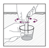 Schritt 12: Rühren Sie das Gemisch vorsichtig mit der Spritzenspitze um. ·Den Arzneimittelbecher nicht schütteln oder schwenken.