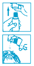 2.Pumpe auf die zu behandelnde Fläche richten; 1 x aufsprühen und das Produkt mit den Fingerspitzen verteilen, um den zu behandelnden Bereich vollständig zu bedecken. Wiederholen Sie diesen Vorgang 6 x, um eine 1 ml-Dosis zu verabreichen.7 Sprühstösse ergeben die Dosis von 1 ml. Spraydämpfe nicht einatmen.