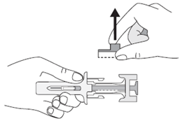 B. Ziehen Sie vorsichtig die graue Nadelschutzkappe gerade und weg von Ihrem Körper ab.