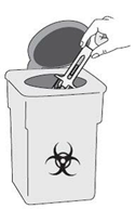 A. Entsorgen Sie die gebrauchte Fertigspritze und andere Materialien in einem durchstichsicheren Behälter.