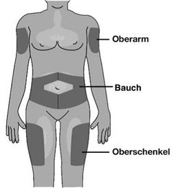 ·Die Rückseite des Oberarms (nur wenn eine andere Person Ihnen die Injektion gibt).