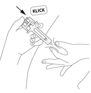 ! Es ist wichtig, nach dem «Klick» vollständig durchzudrücken, um Ihre gesamte Dosis abzugeben.