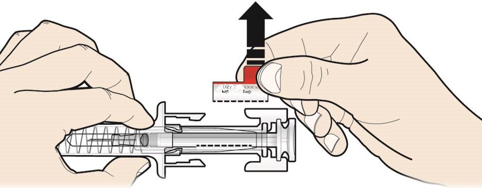 Versuchen Sie nicht, das abziehbare Etikett auf dem Zylinder der Fertigspritze abzulösen, bevor Sie Ihre Injektion anwenden. Wenden Sie sich an Ihren Arzt oder das medizinische Fachpersonal, falls Sie Fragen haben.