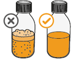 3. Schwenken Sie die Flasche vorsichtig 30 Sekunden lang, um die Lösung zu mischen. ·Wenn Schaum entsteht, lassen Sie die Flasche stehen, bis kein Schaum mehr zu sehen ist.
