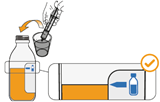 1. Prüfen Sie, ob sich in der Flasche Pulver oder eine flüssige Lösung befindet. ·Wenn sich in der Flasche Pulver befindet, fahren Sie mit Abschnitt A Schritt 1 unten fort. ·Wenn sich in der Flasche Lösung befindet, fahren Sie mit Schritt 2 unten fort. ·Wenn sich in der Flasche eine Lösung befindet, geben Sie kein weiteres Wasser in die Flasche