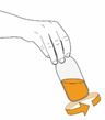 5. Füllen Sie ein Trinkglas mit stillem Trinkwasser.* ·Füllen Sie mit der Applikationsspritze für Zubereitungen zum Einnehmen Wasser in die Flasche bis zum blauen Pfeil auf dem Flaschenetikett. Dies entspricht einer Zugabe von 90 mL Wasser. Hinweis: Wenn sich Schaum bildet, füllen Sie bis zur Oberkante des Wassers auf, nicht bis zur Oberkante des Schaums. *Bei Zubereitung in der Apotheke kann auch steriles oder gereinigtes Wasser verwendet werden.