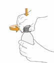 10. Stellen Sie die Flasche auf den Tisch und halten Sie sie fest. Stecken Sie mit der anderen Hand den Adapter mit dem Daumen oder der Handfläche in die Flasche. ·Der Adapter muss bündig mit der Flasche abschliessen, es dürfen keine Rillen zu sehen sein. Drücken Sie kräftig, bis er vollständig eingeführt ist. Hinweis: Das Einsetzen des Adapters kann einen hohen Kraftaufwand erfordern.