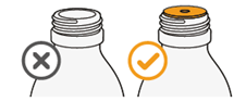 6. Setzen Sie die Schutzkappe wieder auf die Flasche und drehen Sie sie zum Verschliessen im Uhrzeigersinn. Vergewissern Sie sich, dass die Schutzkappe sicher auf der Flasche aufsitzt, bevor Sie mit dem nächsten Schritt fortfahren.