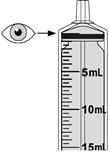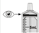 5. Drehen Sie die Flasche vorsichtig auf den Kopf und ziehen Sie am Kolben, um Ihre Dosis abzumessen. Mit der Spitze nach oben muss die Oberseite des schwarzen Stopfens mit Ihrer verschriebenen Dosis übereinstimmen. ·Wenn grosse Luftblasen in der Spritze erscheinen, drücken Sie das Arzneimittel zurück in die Flasche und ziehen Sie Ihre Dosis erneut auf. Machen Sie das so lange, bis keine Luftblasen mehr zu sehen sind. Falls noch kleine Luftblasen zu sehen sind, ist das in Ordnung.