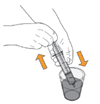 2. Legen Sie die Applikationsspritze in das Glas mit dem warmen Wasser. Ziehen Sie vier- bis fünfmal Wasser in die Applikationsspritze hinein und wieder heraus.