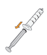 5. Lassen Sie den Kolben und den Spritzenzylinder vor dem nächsten Gebrauch auf einer trockenen Oberfläche an der Luft trocknen. Bewahren Sie die Spritze immer ausserhalb der Reichweite von Kindern auf. Hinweis: Verwenden Sie eine neue Applikationsspritze für jede neue Flasche Mekinist.