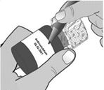 1.5: Halten Sie die Spritze in Position und drehen Sie die Flasche auf den Kopf (siehe Abbildung I).