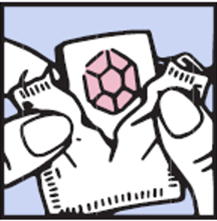 1.Reissen Sie das Aluminium-Sachet vorsichtig mit trockenen Händen auf. Drücken Sie die Schmelztablette nicht durch die Schutzfolie.