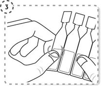 4.Öffnen Sie das Einzeldosisbehältnis durch Drehen der Kappe, wie auf der Abbildung gezeigt. Berühren sie nach dem Öffnen nicht die Tropfspitze des Behältnisses.
