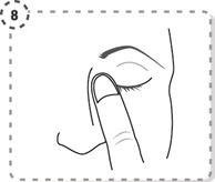 8.Drücken Sie eine Minute lang mit einem Finger auf den inneren Augenwinkel (neben der Nase) des betroffenen Auges. Halten Sie das Auge dabei geschlossen.